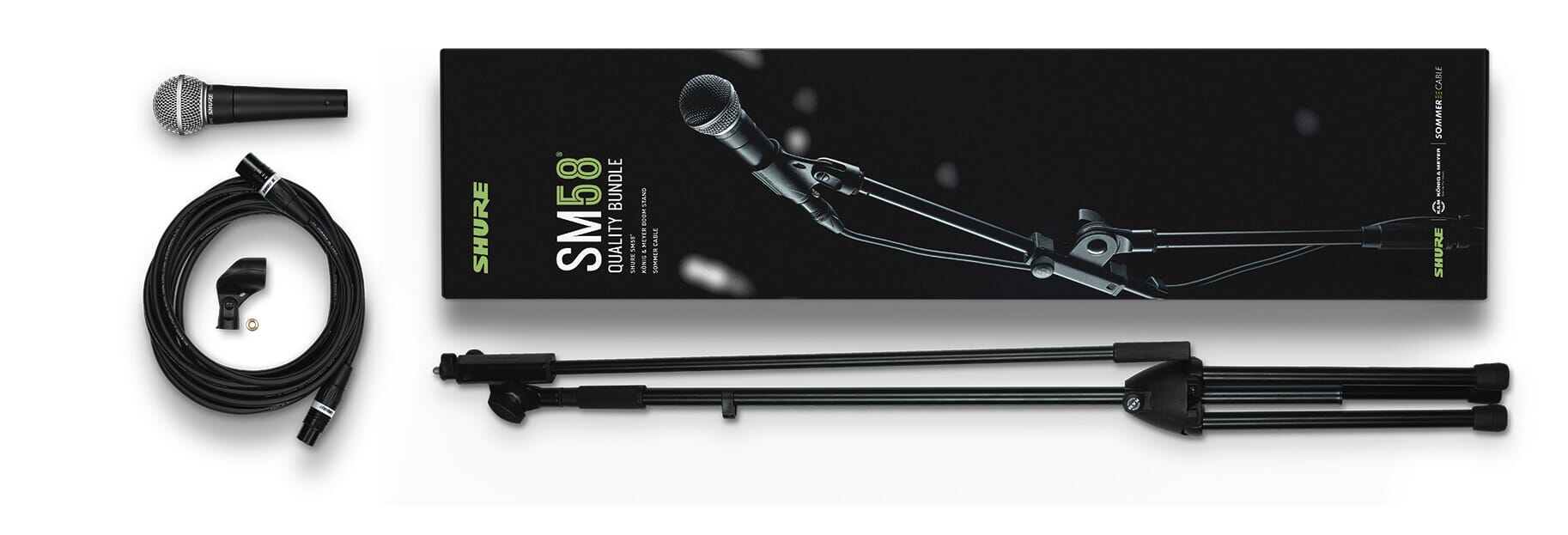 Shure mikrofonpakke. Verdens mest solgte vokalmikrofon SM58, i pakke med K&M