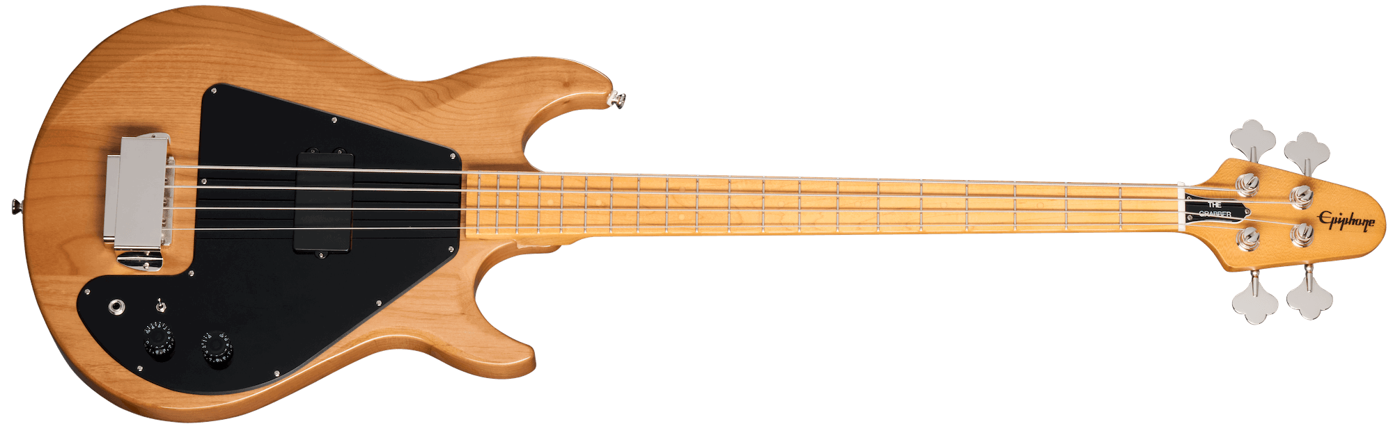 Players have been requesting a reissue of this model for decades, and Epiphone has heard you! The Epiphone Grabber Bass is an Inspired by Gibson reissue of the vintage 70s era classic that has been played by everyone from Gene Simmons and Krist Novoselic to Mike Dirnt and Lou Barlow, to name a few. The Epiphone Grabber features a three-piece alder body, a 34" scale three-piece maple neck with 20 frets, and an Epiphone Bass Humbucker pickup that delivers earth-quaking lows and solid, punchy midrange. The pickup is wired to master volume and tone controls, as well as a coil-splitting mini toggle switch for even more tonal options. A premium gig bag is also included.