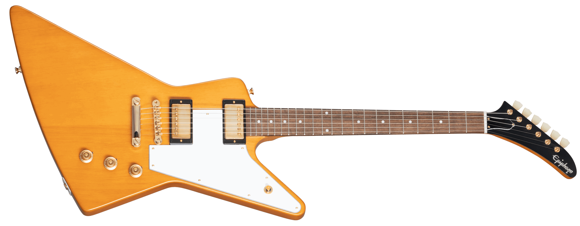 Made in partnership with the Gibson™ Custom Shop, the 1958 Korina Explorer™ is Epiphone’s impressive recreation of one of the most famous and valuable vintage guitars ever made. It brings authentic 1958 Explorer details to guitarists everywhere at a breakthrough price. Like the ultra-rare original Gibson models from 1958, it features a solid Korina body and a Korina neck with a long neck tenon and a 1958 Explorer neck profile. It is also equipped with an Indian laurel fretboard and gold hardware. The electronics are also top-notch, with Gibson Burstbucker™ 2 and Burstbucker 3 pickups wired to individual volume controls and a master tone control with CTS® pots and a Mallory™ capacitor, along with a Switchcraft® 3-way pickup selector switch and 1/4” output jack. An Epiphone x Gibson Custom logo on the back of the headstock is also proudly displayed, and a hardshell case is also included.