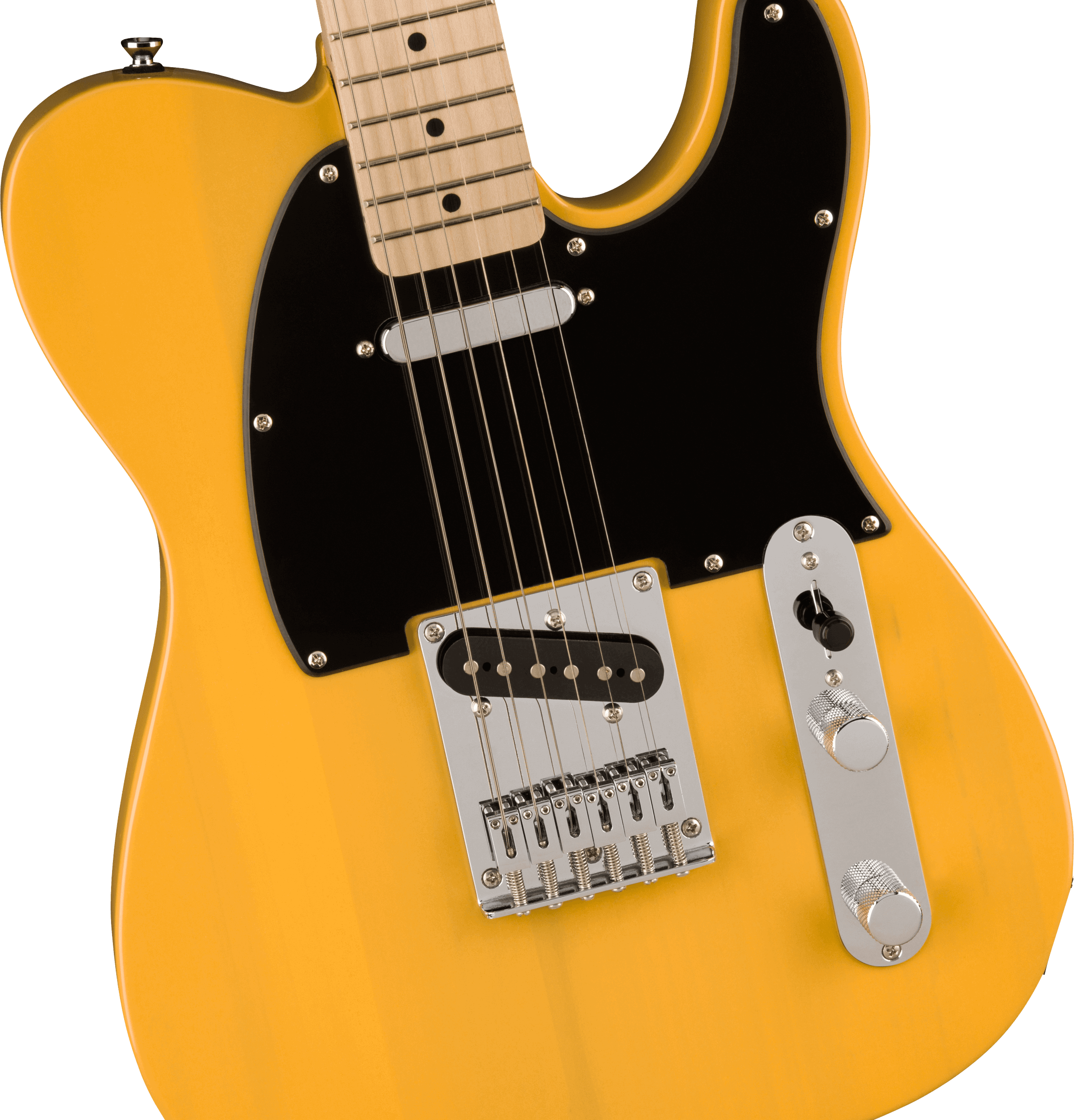 The Squier Sonic® Telecaster® is ready to launch any musical adventure into warp speed, offering iconic Fender® style and inspiring tone for players at any stage. This Tele® sports a slim and inviting "C"-shaped neck profile and a thin, lightweight body for optimal playing comfort while a pair of Squier® single-coil pickups chime with crystal clarity for a wide variety of versatile tones. Further details of this model include a 6-saddle hardtail bridge for reliable intonation, sealed-gear tuning machines for smooth, accurate tuning and durable chrome-plated hardware that is sure to catch the spotlight.