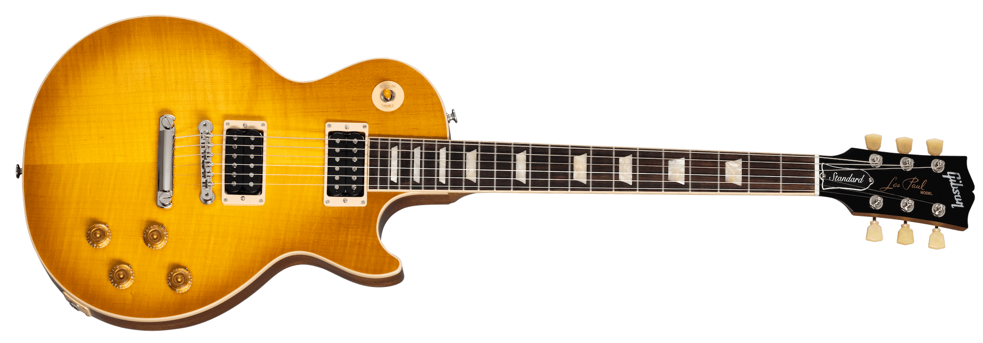 Den nye Les Paul™ Standard 50s Faded vender tilbake til den klassiske designen som gjorde den relevant, spilt og elsket – formende lyd på tvers av generasjoner og sjangre av musikk. Den hyller Gibsons gylne æra av innovasjon og bringer autentisiteten tilbake til livet. Les Paul Standard 50s har en sateng nitrocellulose lakk finish som gir den utseendet og følelsen av en lenge verdsatt musikalsk følgesvenn. Den har en solid mahognikropp med AA-topp i lønn og en avrundet mahognihals i 50-tallsstil med gripebrett i rosentre og trapesinnlegg. Den er utstyrt med en ABR-1 Tune-O-Matic-bro, en aluminium Stop Bar-halestykke, Vintage Deluxe-tunere med Keystone-knapper og gull-tophatknotter med skivepekere. De åpne spolene Burstbucker™ 1 (nakke) og Burstbucker 2 (bro) pickupene er håndkoblet til lydkoniske potensiometre og Orange Drop®-kondensatorer.