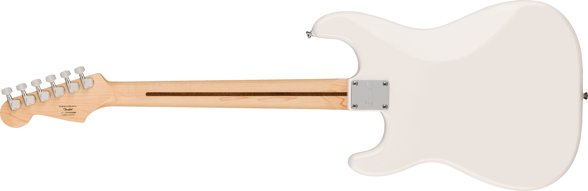 The Squier Sonic® Stratocaster® HT is ready to launch any musical adventure into warp speed, offering iconic Fender® style and inspiring tone for players at any stage. This Strat® sports a slim and inviting "C"-shaped neck profile and a thin, lightweight body for optimal playing comfort while a trio of Squier® single-coil pickups chime with crystal clarity for a wide variety of versatile tones. Further details of this model include a 6-saddle hardtail bridge (HT) for reliable intonation, sealed-gear tuning machines for smooth, accurate tuning and durable chrome-plated hardware that is sure to catch the spotlight.