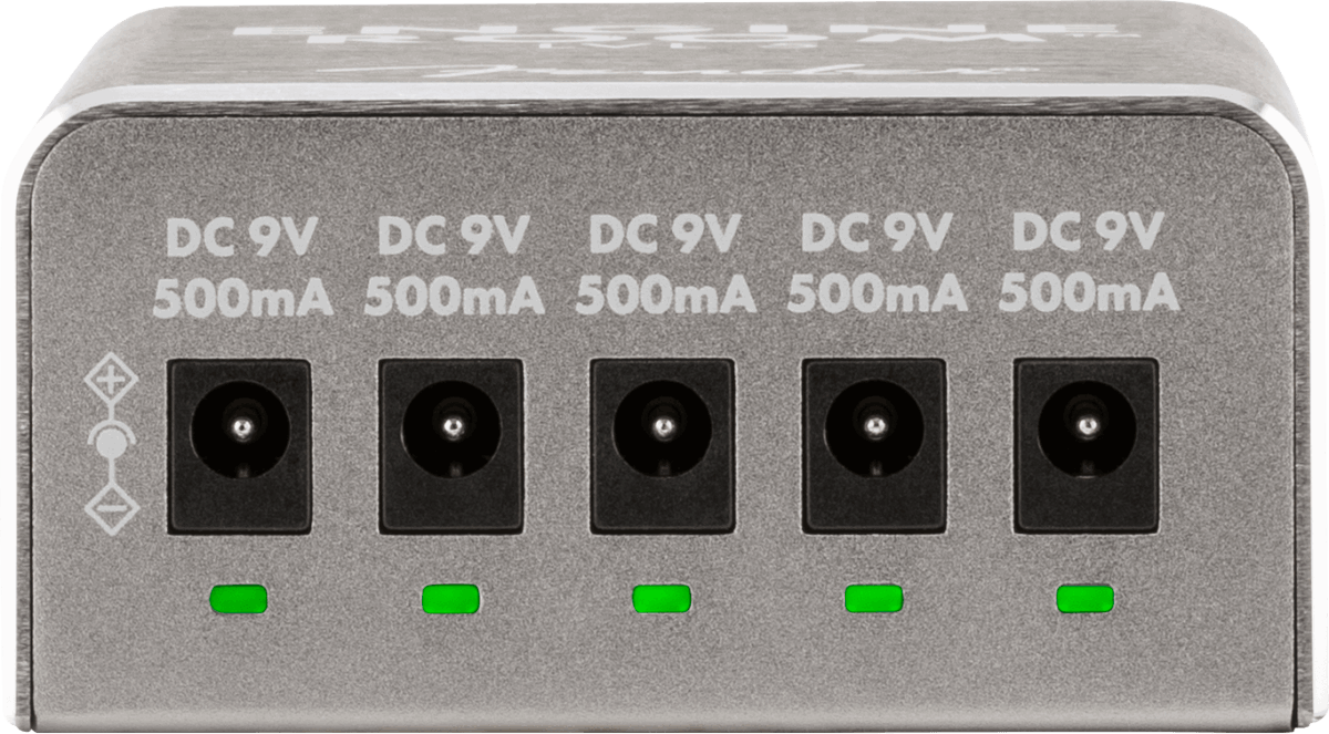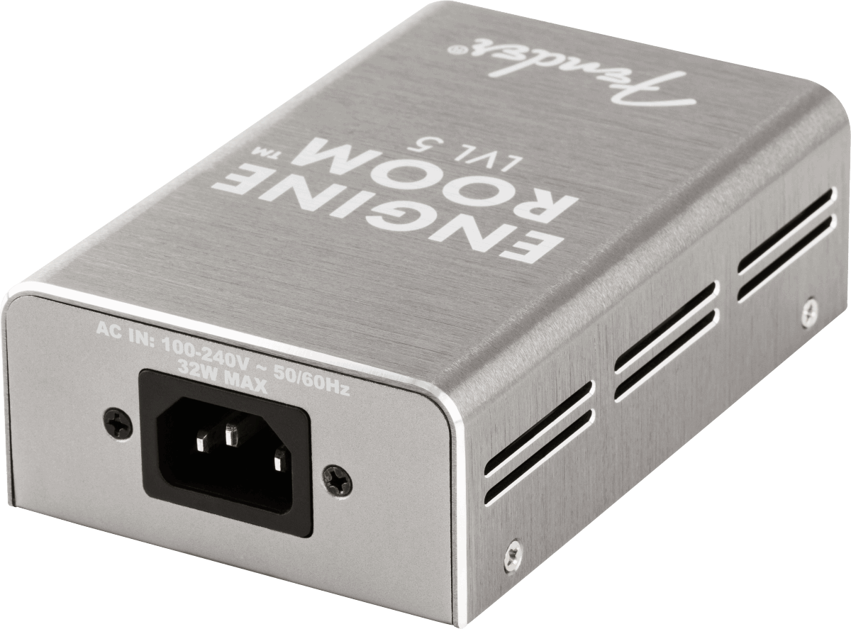 Pedals need clean, isolated power and Fender's Engine Room® LVL5 Power Supply is capable of the task. Featuring five ground isolated power outlets, each outlet is capable of 9Vdc at 500mA to keep your pedals performing at their peak. Works as a standalone power supply for smaller pedalboards or can be daisy-chained with our LVL 12 for those tone fanatics with larger boards.