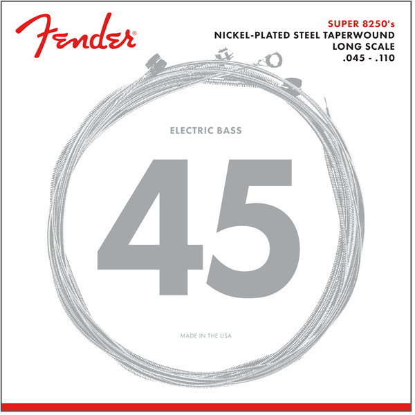 Fender 8250 nickel-plated steel strings deliver the high output and dynamic sound of steel with the smooth feel of nickel. The set also includes taperwound E and B strings to provide enhanced sustain and intonation. If you're looking for a set of strings to accommodate rock, funk and other styles of music, these strings are sure to make your bass cut through the mix.